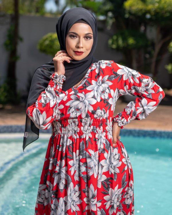 Embrace bohemian elegance with our Red Boho Maxi Dress. This stunning, full-length dress features a vibrant red base adorned with a bold floral print in black and white, creating a captivating contrast. The dress is designed with a V-neckline and a cinched, elasticated waist that provides a comfortable and flattering fit.